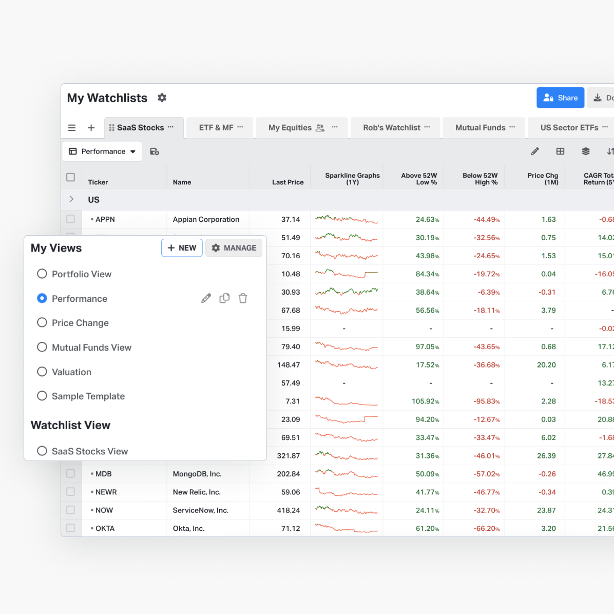 Share personalized watchlists at the click of a mouse