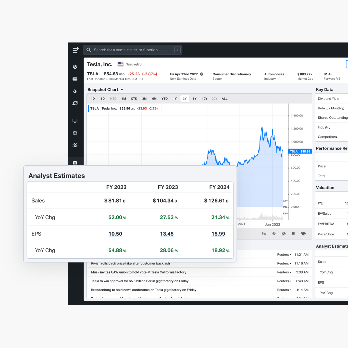 Access data on global stocks, ETFs, mutual funds, and macro trends. Track performance, generate ideas, and pinpoint where to dive deeper – whether it’s a specific quarter, year, or key metric.