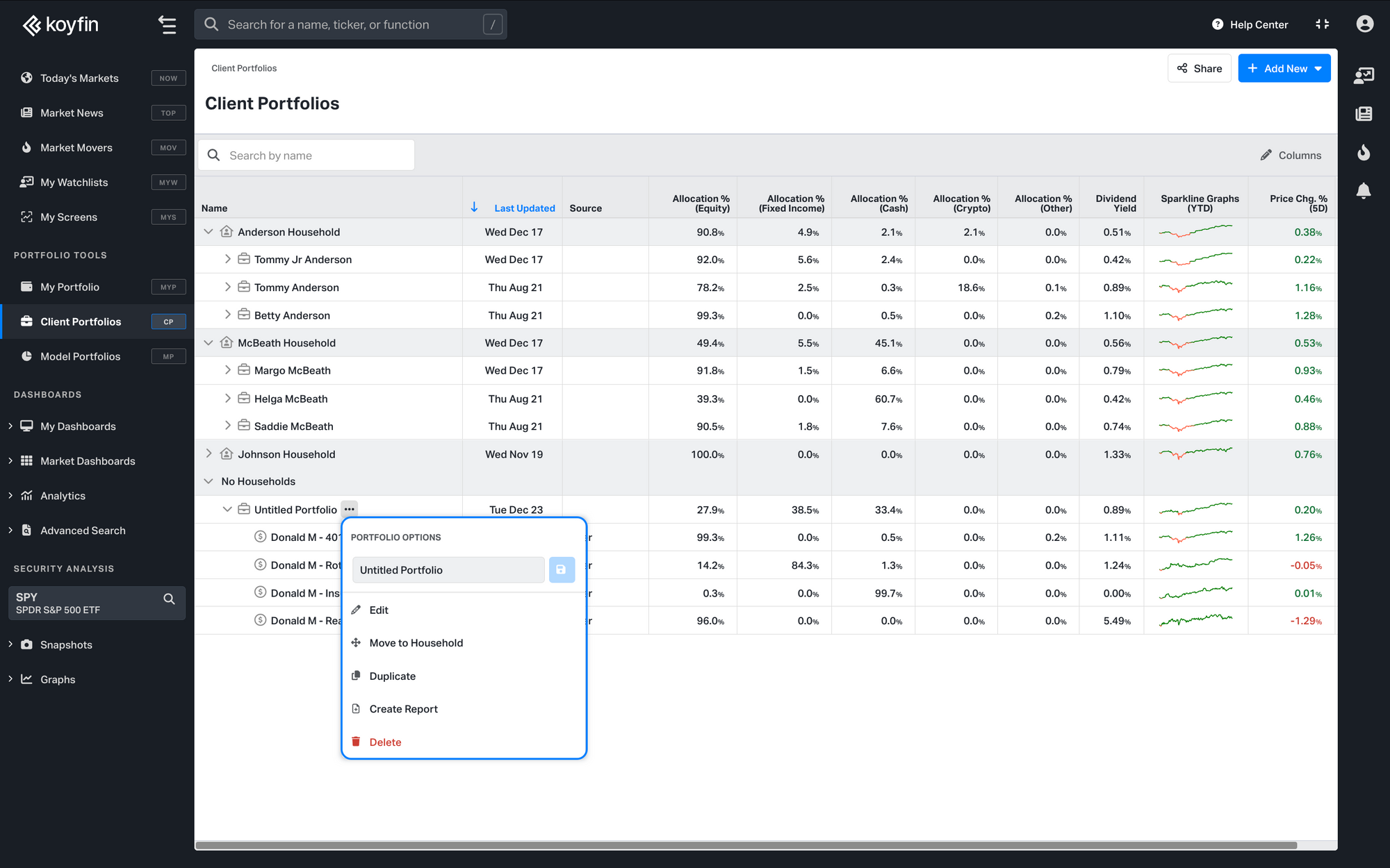 - The portfolio is placed under No Household by default.