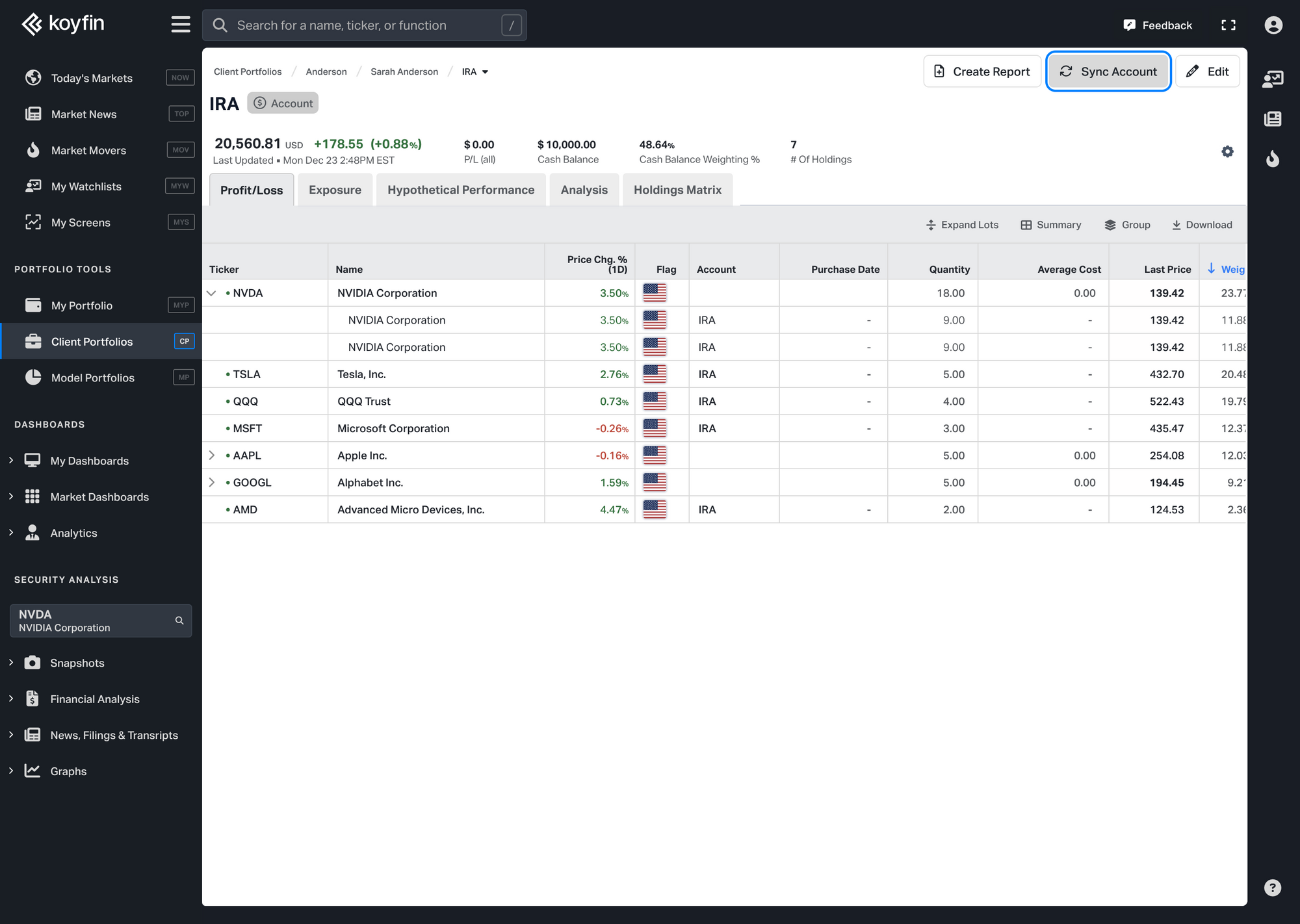 - Your portfolio structure is preserved. Any household and portfolio organization you've set up in Koyfin stays unchanged through every sync.