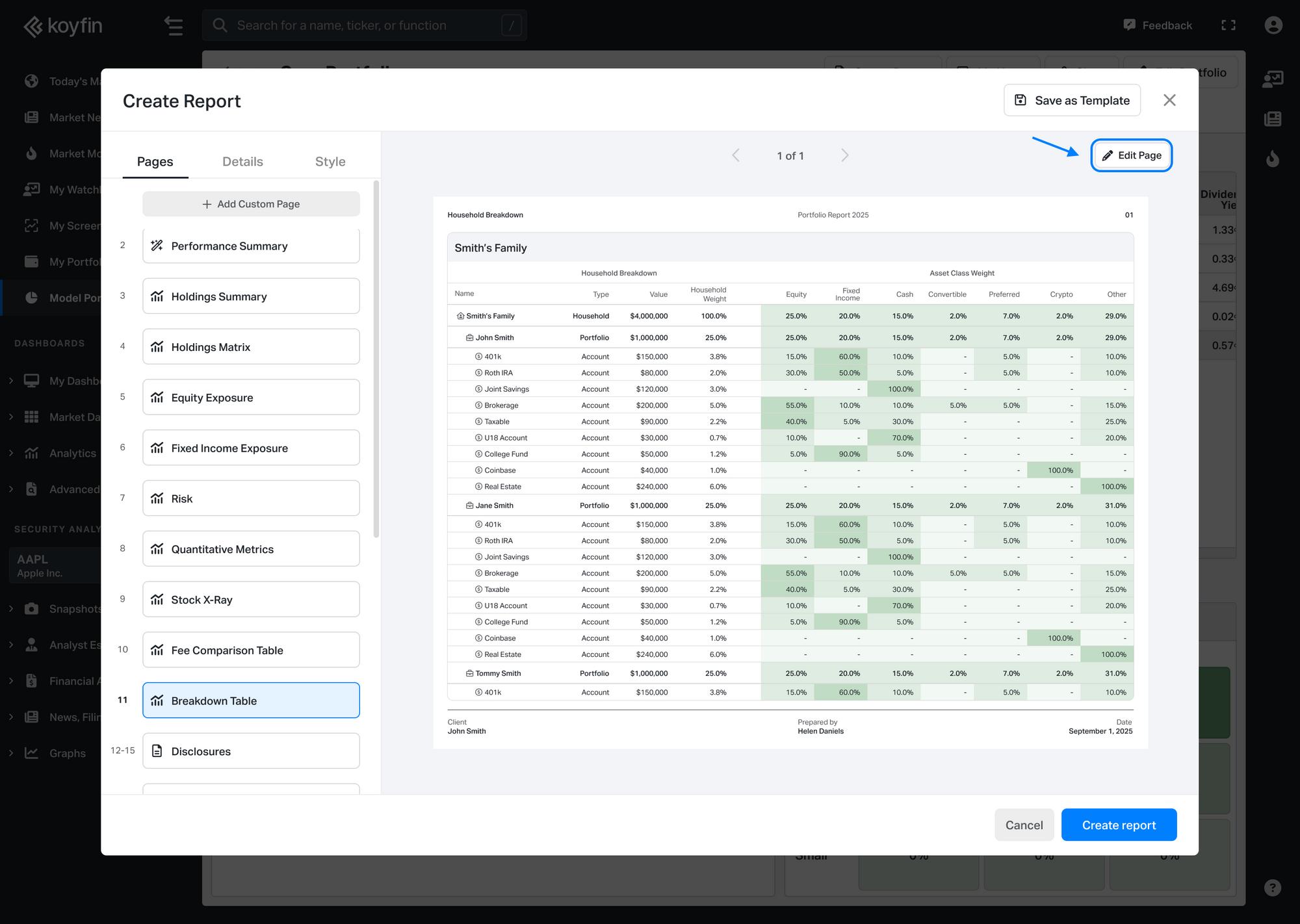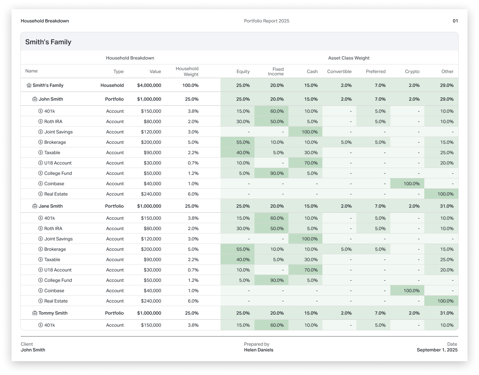 See exactly how your client portfolios are structured with the new Breakdown Table, a new page available in Client Reports.