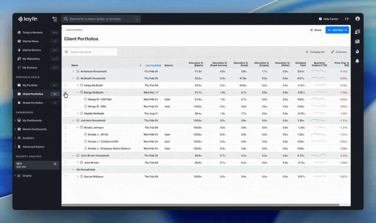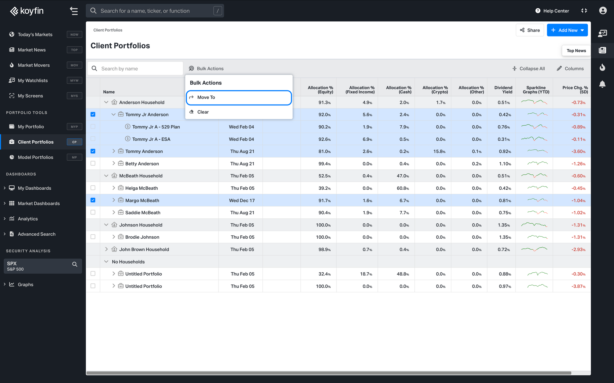 Organize your client data faster by moving multiple accounts and portfolios at once from the Client Portfolios homepage.