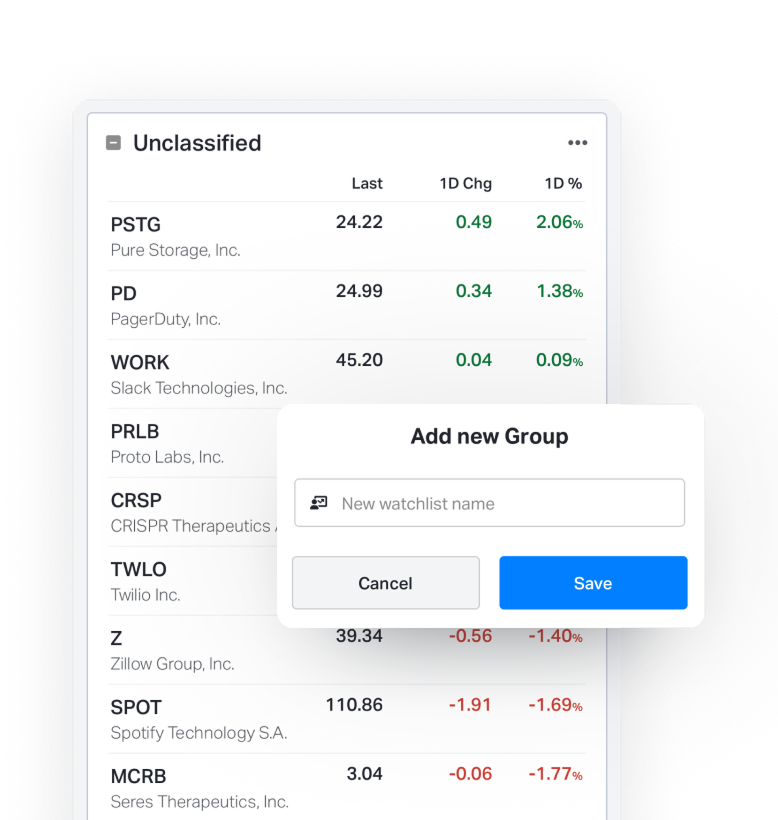 Your watchlists can be customized on the go; add tickers, change column views and create new groups, so you get to see the information you want how you want it.