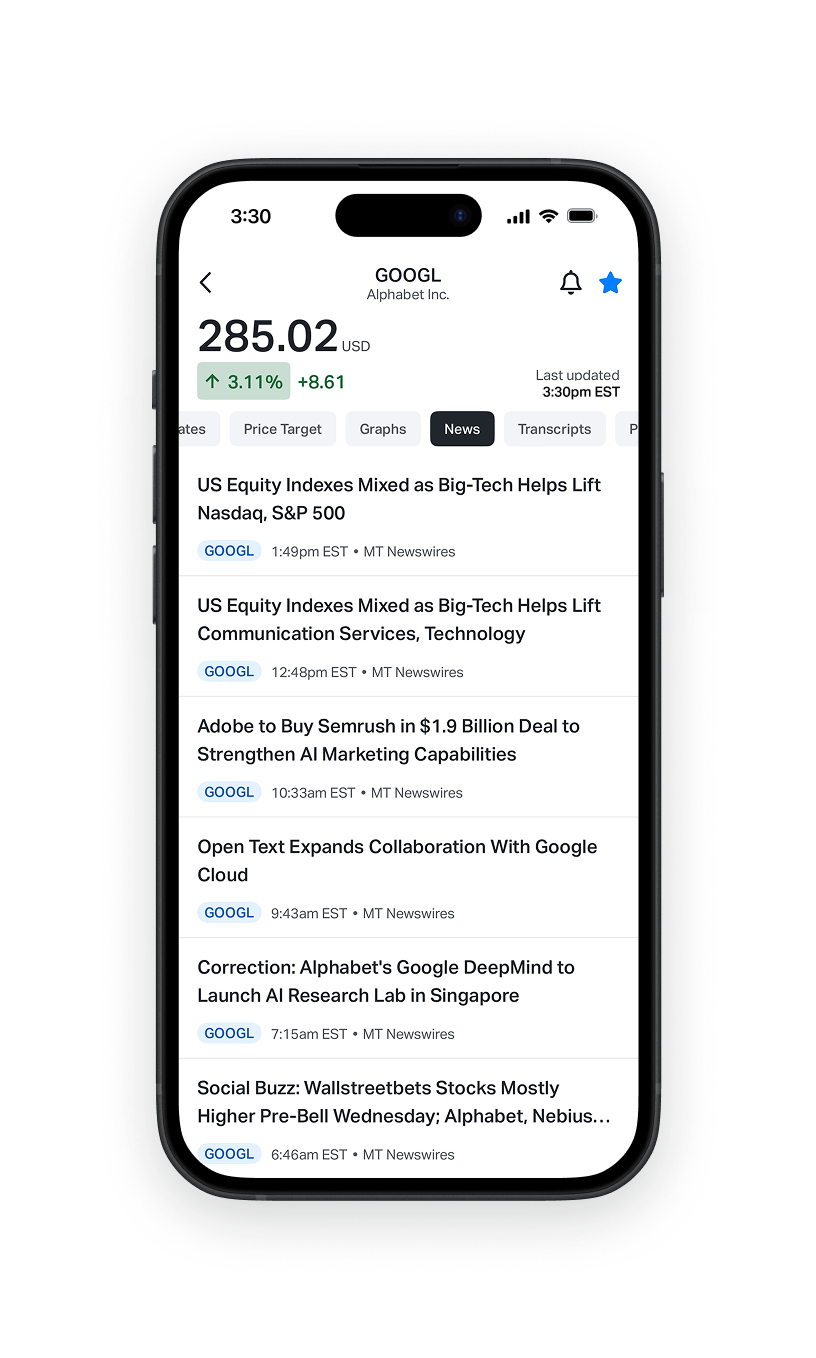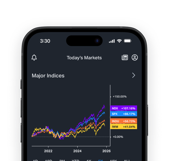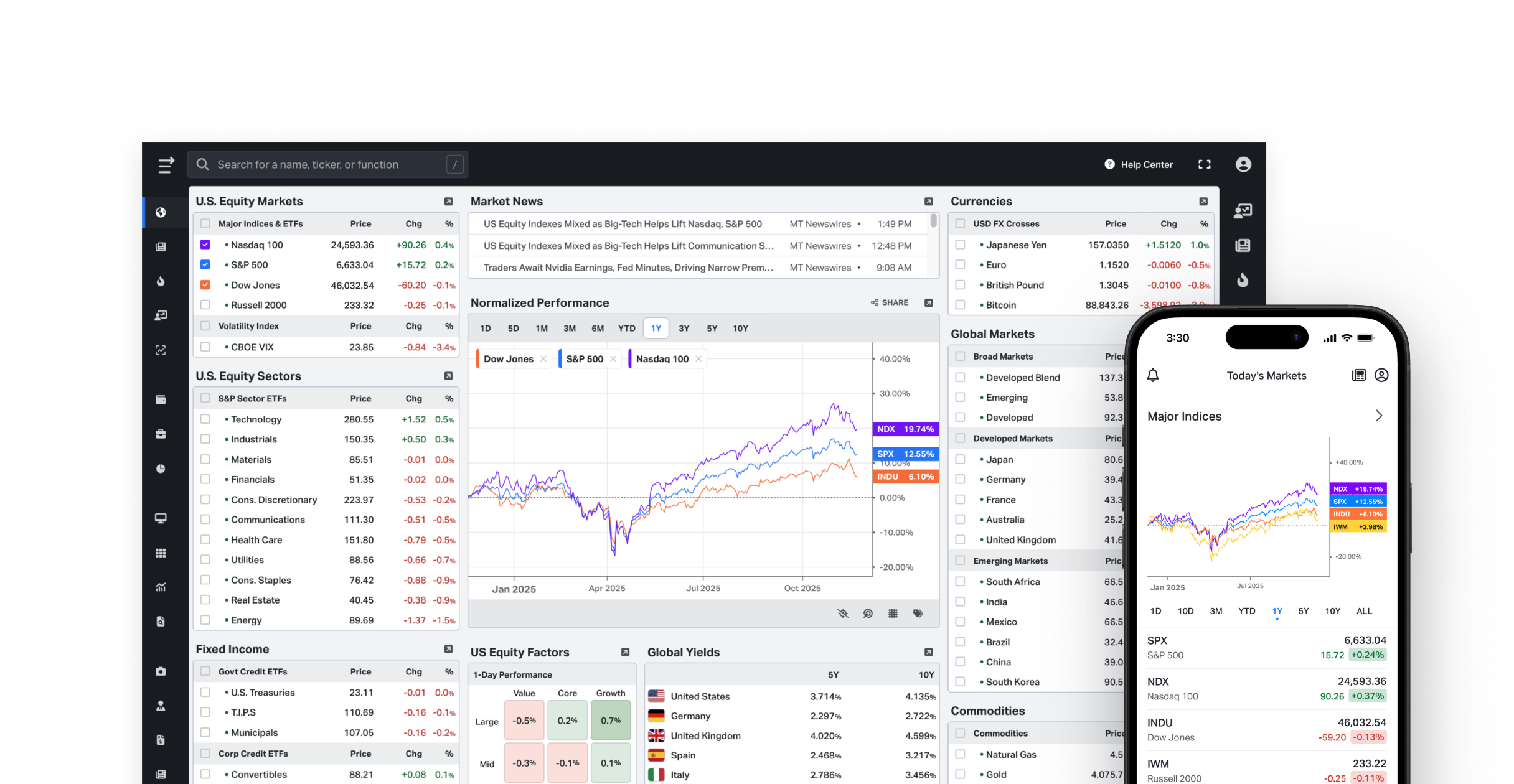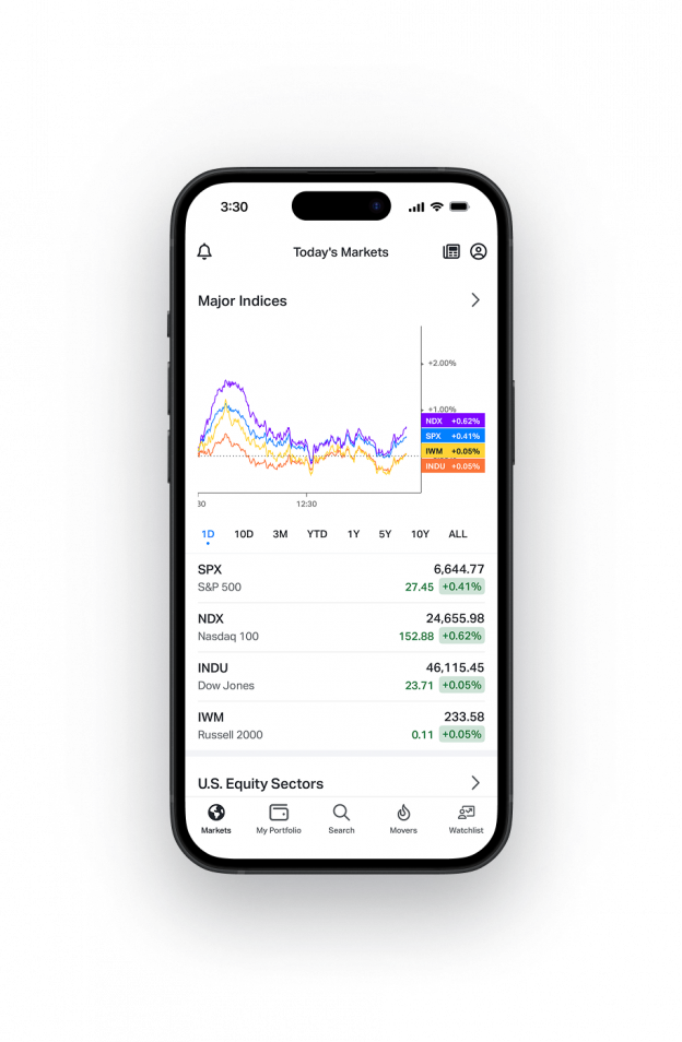 Unfortunately, the markets don’t stop just because you’re away from your desk. Easily stay up to date on the move with our market overview, news and watchlists screen.