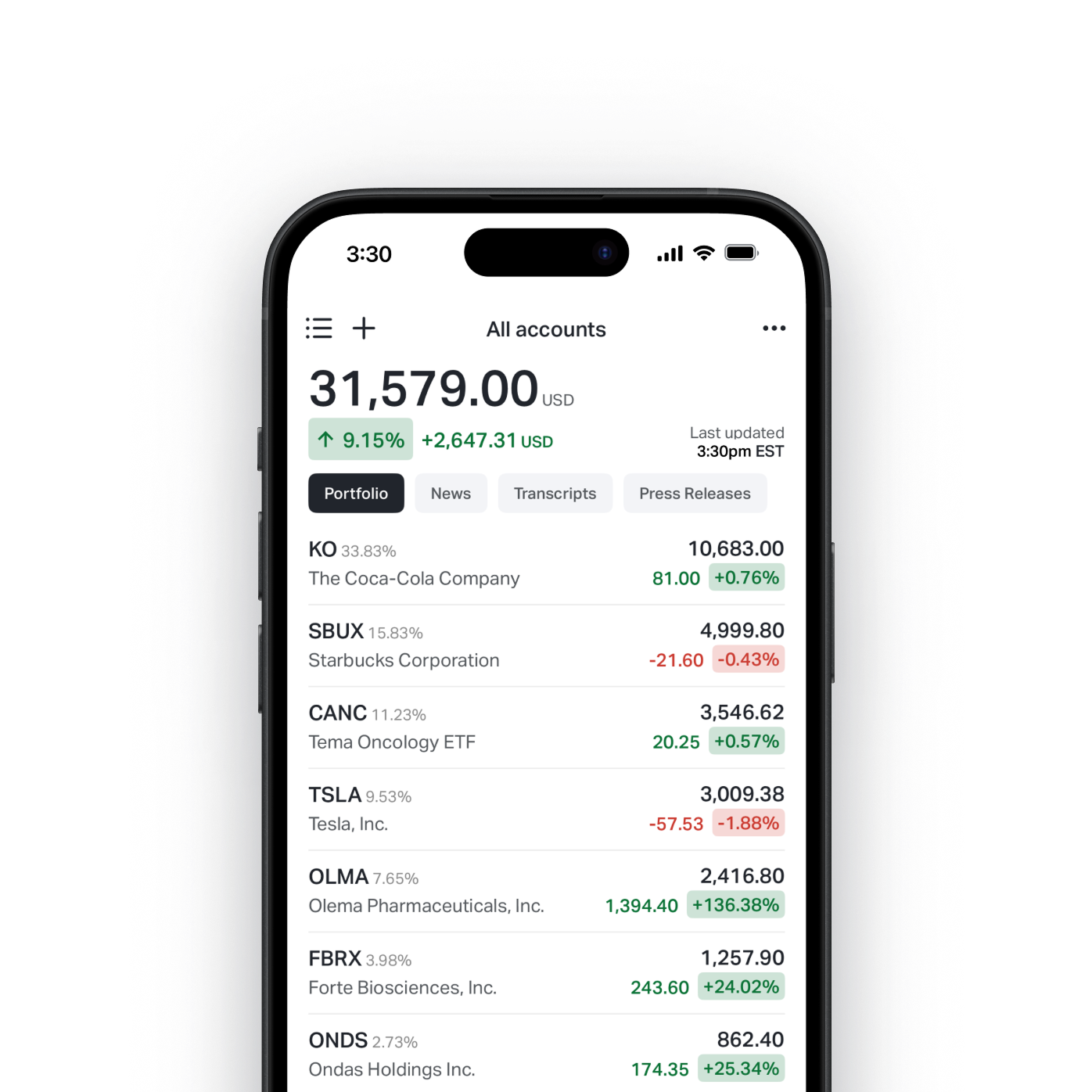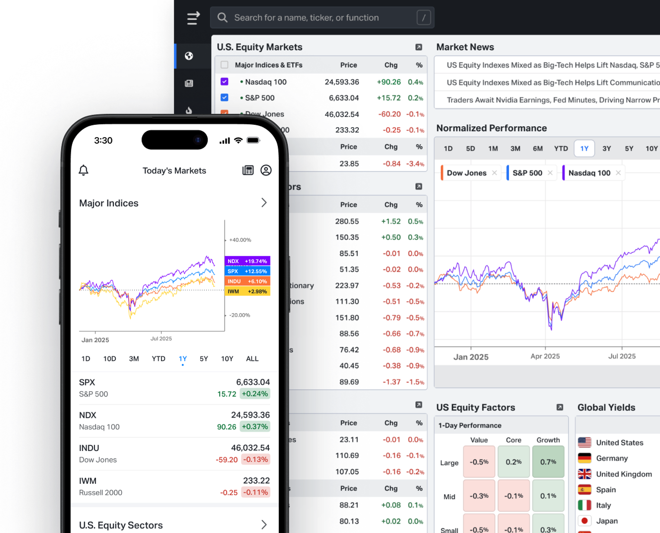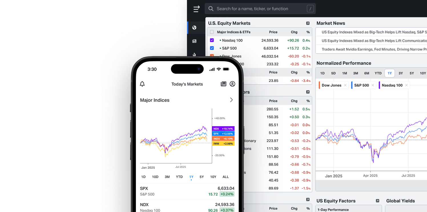 Wherever you go, the Koyfin mobile app lets you track your portfolio with My Portfolio, synced seamlessly with desktop.
