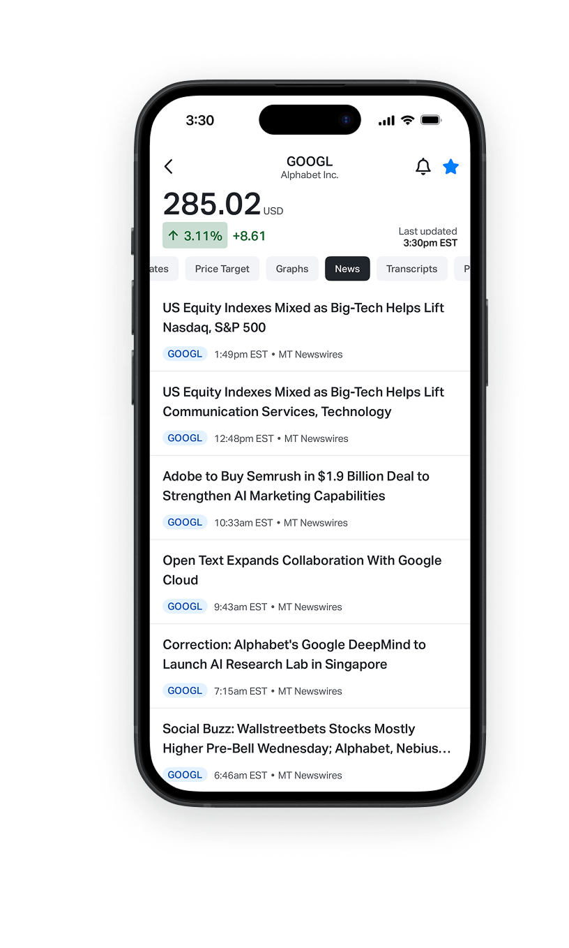 Discover a security you like but are away from your desk? Now you can view it and add it to your watchlist wherever you are.