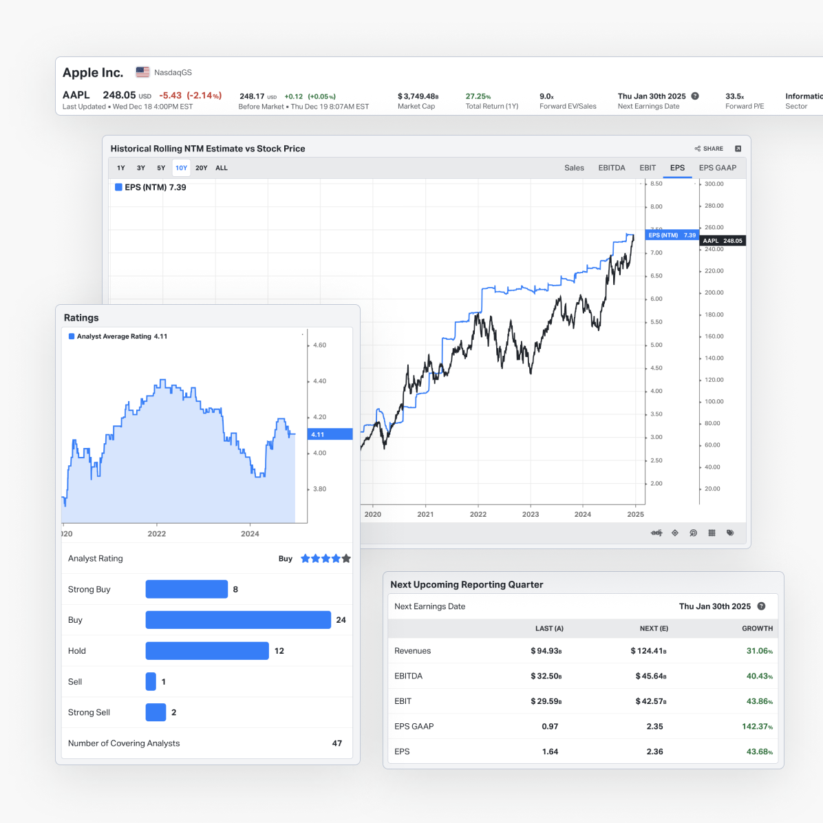 Price targets, earnings estimates, and buy/sell/hold ratings to add context to your research.